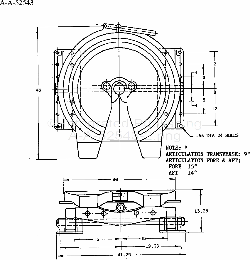 1. Fifth wheel assembly requires use of 3 ½ inch kingpin as shown in A-A-52479.